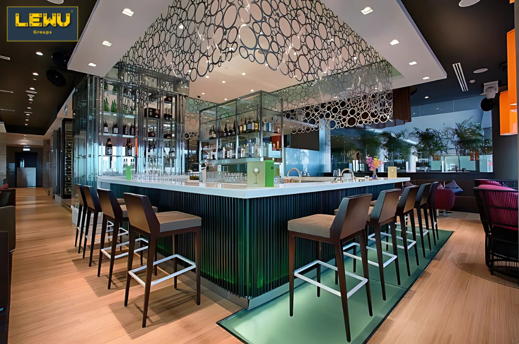 Một bar & lounge thành công không chỉ đẹp ở ngày khai trương, mà còn phải vận hành ổn định và tiết kiệm chi phí bảo trì. LEWU chú trọng vào việc lựa chọn vật liệu bền, dễ vệ sinh, thiết bị tiết kiệm điện và giải pháp kỹ thuật giúp giảm hao mòn trong quá trình sử dụng.