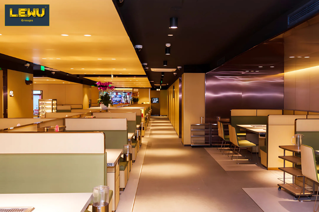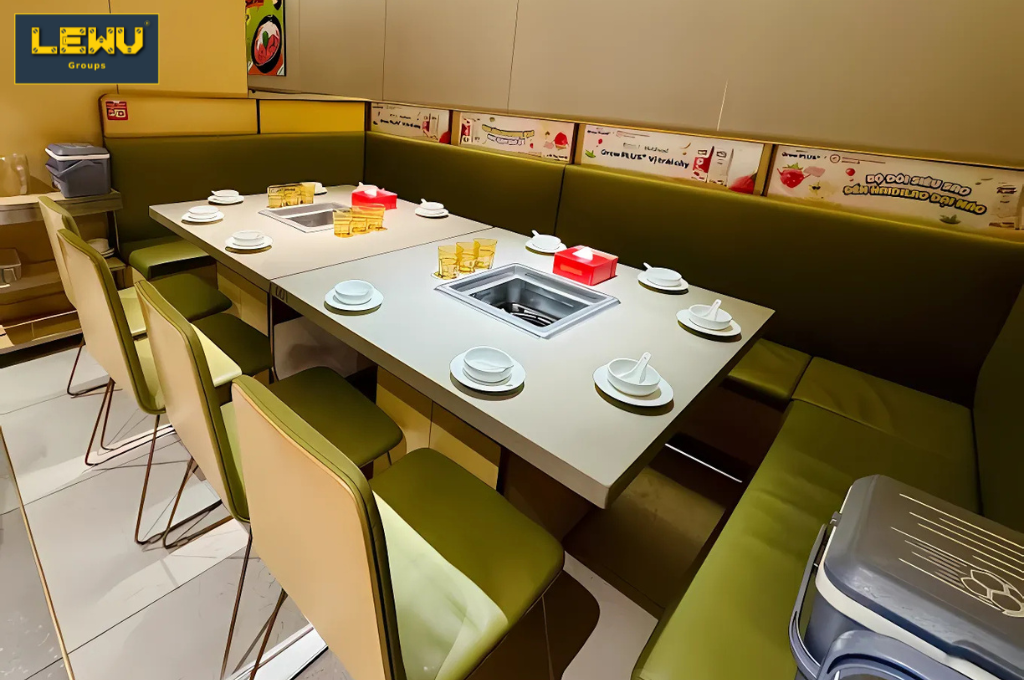 LEWU hiểu rằng với Haidilao, trải nghiệm khách hàng không chỉ nằm ở món ăn mà còn ở không gian và cảm giác khi dùng bữa. Vì vậy, mọi chi tiết từ ánh sáng ấm, cách bố trí bàn ghế đến lối đi rộng rãi đều được chú trọng.